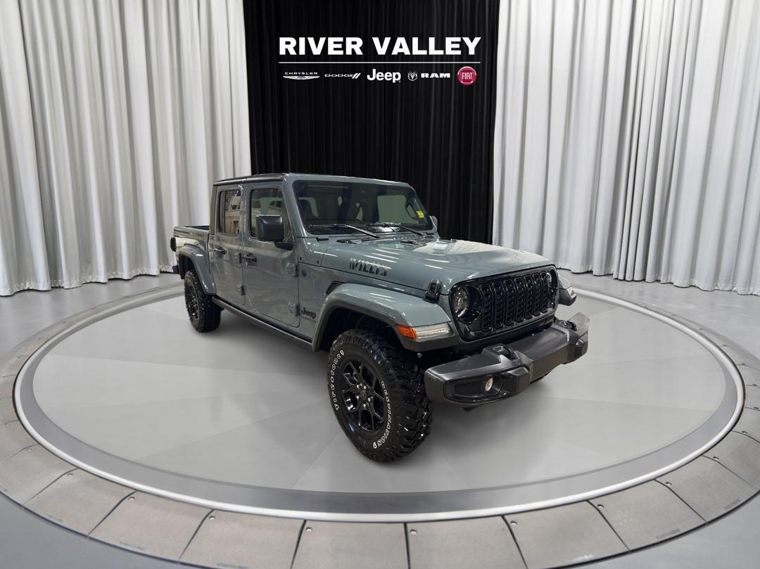 QUICK ORDER PACKAGE 24W WILLYS, BLACK 3-PIECE FREEDOM HARDTOP, CONVENIENCE GROUP, TECHNOLOGY GROUP, SAFETY GROUP, LED REFLECTOR HEADLAMPS, HEATED STEERING WHEEL, ALPINE PREMIUM AUDIO SYSTEM, REMOTE START SYSTEM. Get ready to conquer the concrete jungle and uncharted territories alike with the ruggedly handsome 2024 Jeep Gladiator Willys in Anvil! This beast is not just a pretty face with its chiseled body; it's the Swiss Army knife of trucks, equipped to tackle your wildest adventures while wrapped in a cloak of urban sophistication.