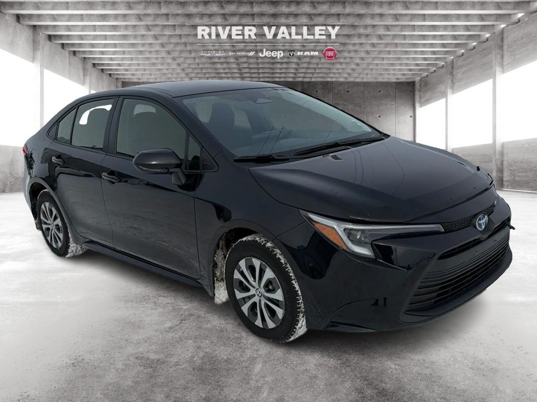 Ah, the sleek 2025 Toyota Corolla Hybrid LE stands proud in fetching black on black, ready to roll out of River Valley Dodge in Fort Saskatchewan with a bevy of features fit for a king—or just someone who enjoys a dash of luxury with their eco-friendliness! Let's take a closer peek, shall we?